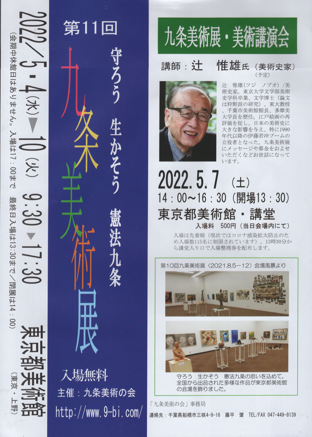 第11回九条美術展が2022年5月4日(水)から10日(火)の会期で、上野の東京都美術館で開催されます。